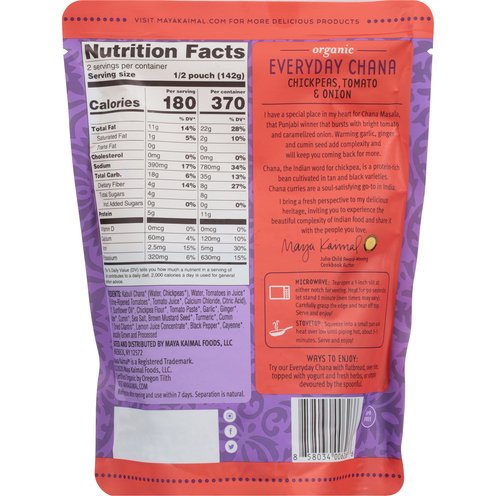- Microwave: Tear open a 1-inch slit at either notch for venting. Heat for 90 seconds; let stand 1 minute (oven times may vary). Carefully grasp the edge and tear off top. Serve and enjoy! Stovetop: Squeeze into a small pan and heat over low until piping hot about 3-5 minutes. Serve and enjoy! Ways to Enjoy: Try our Everyday Chana with flatbread, over rice topped with yogurt and fresh herbs, or simply devoured by the spoonful. Refrigerate after opening and and use within 7 days.
