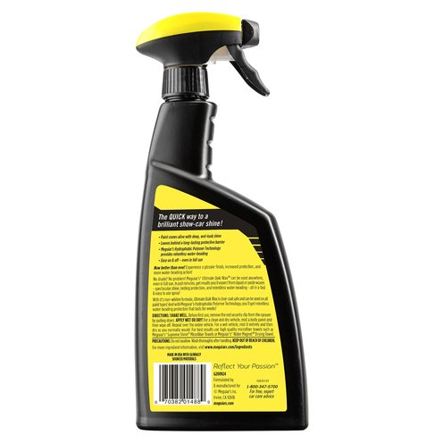 Meguiar's Ultimate Quik Wax can be used anywhere, even in full sun. In just minutes, get results you'd expect from liquid or paste waxes - spectacular shine, lasting protection, and relentless water beading - all in a fast & easy to use spray! With it's non-whitening formula, Ultimate Quik Wax is clear coat safe and can be used on all paint types! And with Meguiar's Hydrophobic Polymer Technology, you'll get relentless water beading protection that lasts for weeks!