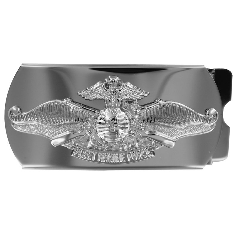 Men's Silver 3" Buckle ENL Fleet Marine Force Emblem in Silver Mirror