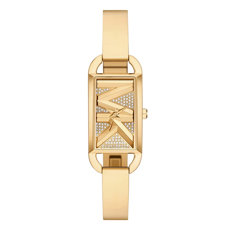 Michael Kors' 22mm MK Empire watch features a silver pavé dial, three-hand movement and stainless steel all over pavé bangle bracelet.