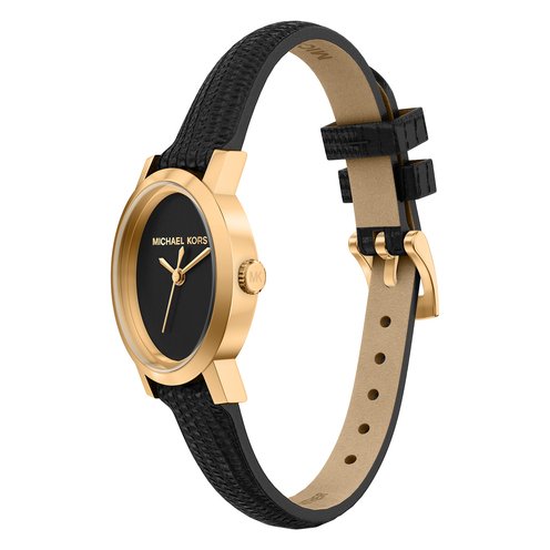 Inspired by the Michael Kors runway collection, the Maude returns with its signature minimalist oval case and a new black lizard-embossed strap—an update personally requested by Michael. Sleek and versatile, it�s a refined staple that works from day to night.