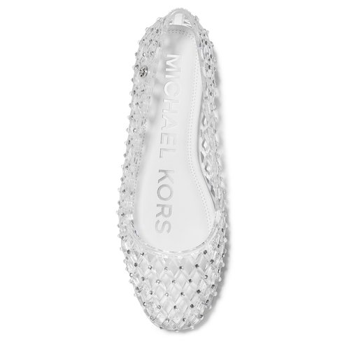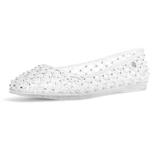 The Pixie reinvents the classic ballet falt in a modern jelly silhouette defined by a woven, see-through design. Light and endless versatile, this embellished pair brings a chic twist to warm-weather dressing.