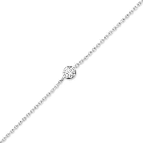 Add a little sparkle to your daily look with this lab-grown diamond solitaire bezel bracelet. Finished in sterling silver, this bracelet is set with a 1/10ctw round-shaped lab-grown diamond and soldered on a diamond cut cable chain with lobste closure. Can be stack with other dainty bracelet or worn alone.