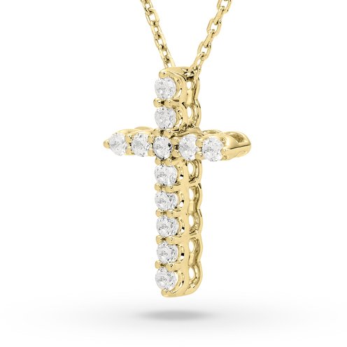 A modern take on a classic cross pendant. This elegant piece brings a timeless charm to any jewelry collection and set with 1/3 carat of lab-created diamond. Finished in sterling silver with yellow gold plating and suspended on an 18-inch diamond-cut cable chain with lobster closure.