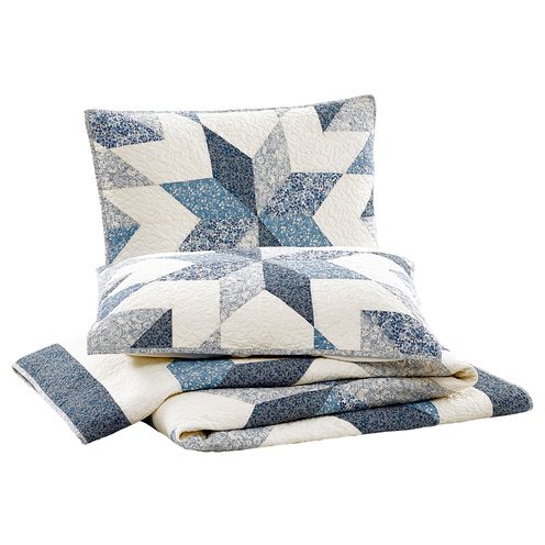 Bring timeless charm to your bedroom with this beautifully crafted patchwork quilt set. Made with a cotton face and cotton fill, this lightweight quilt set is perfect for year-round comfort. The intricate star pattern in soothing blue tones adds a classic, elegant touch, while the soft brushed polyester backing enhances its cozy feel.