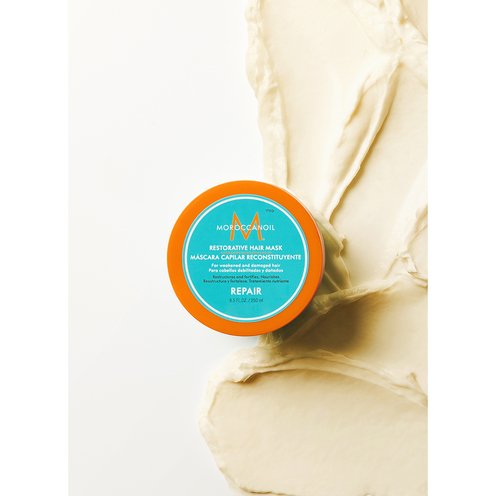 For best results, after shampooing, apply a generous amount of Moroccanoil Restorative Hair Mask all over hair and massage a little into the scalp. Leave on for 5-7 minutes. Rinse well. Use regularly on chemically compromised hair and decrease usage as hair's texture and elasticity improve. For thick, coarse hair, mix about 1 teaspoon of Moroccanoil Treatment with Restorative Hair Mask for added shine and elasticity.