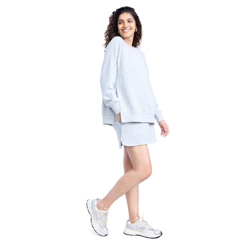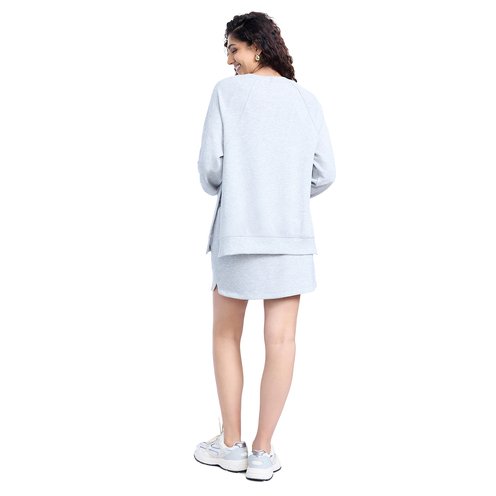 Stay cozy and stylish in this long sleeve raglan scuba crewneck sweater, designed with side slits for an easy, relaxed fit. Made from a soft polyester rayon spandex blend, this lightweight layer offers the perfect mix of comfort and polish. Effortless to dress up or down, it's a must-have for every stage of pregnancy and beyond.