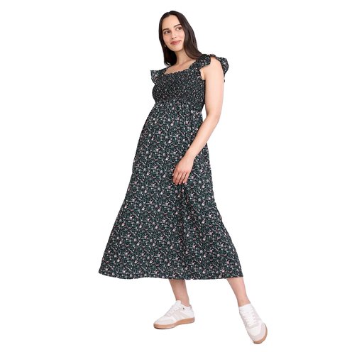 Flowy, feminine, and effortlessly chic, the Sleeveless Ruffle Shoulder Smocked Maxi Dress is a must-have for every stage of pregnancy. Designed with a flattering square neckline and delicate ruffle shoulders, it exudes timeless charm. The smocked chest provides a comfortable, flexible fit, while the maxi silhouette offers an elegant look perfect for any occasion.