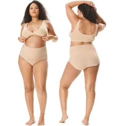 - YOUR ULTIMATE COMFORT: SEAMLESS OVER-THE-BUMP PANTY 2-PACK Meet your new everyday essentials. This value pack of over-the-bump panties is crafted from super soft, stretchy, buttery-soft fabric that grows with you through every stage of pregnancy. Plus, they're perfectly wearable postpartum, offering gentle coverage and a comforting hug for your belly. Experience ultimate comfort with our seamless, no-dig design!