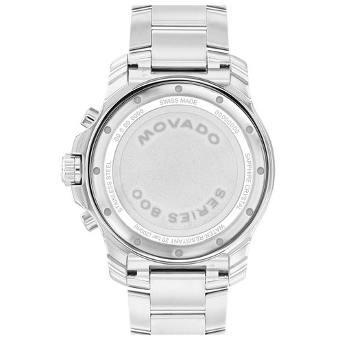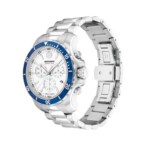 The Series 800 is a modern take on a timeless sport-inspired silhouette. This 42mm chronograph watch features a white lacquer dial and a blue aluminum bezel.