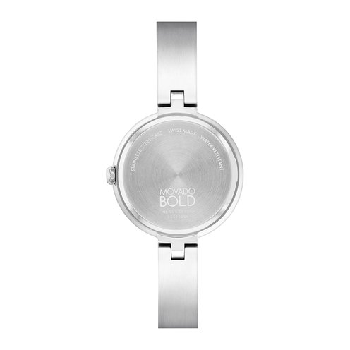 The BOLD Bangle is defined by an elevated, bold case and an intergrated jewelry-inspired bracelet. This 28mm watch features a beautiful dial with slim hands, and a signature dot at 12 o'clock.