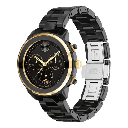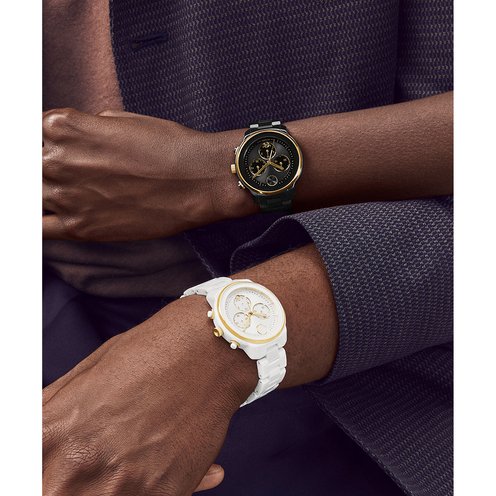 The sporty, eternally chic chronograph gets fresh feel with striking contemporary design that combines modern minimalism and a bold edge. The classic bracelet and statement-making 40mm case are crafted from ceramic for a flawlessly refined finish. The matching chronograph dial features three subdials, a date window with pale yellow gold toned details and Swiss Super-LumiNova® accents.