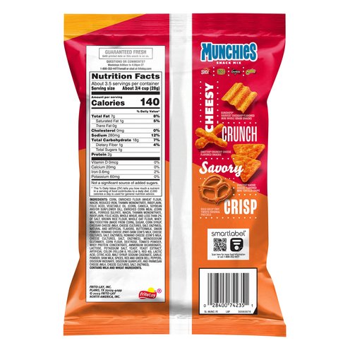 Inside each bag of MUNCHIES®�snacks, you’ll find a tasty mix of some of your favorite snack brands, including SUNCHIPS®, DORITOS®, ROLD GOLD®�and CHEETOS®�snacks! Grab a bag for a flavor combination that’s hard to beat!