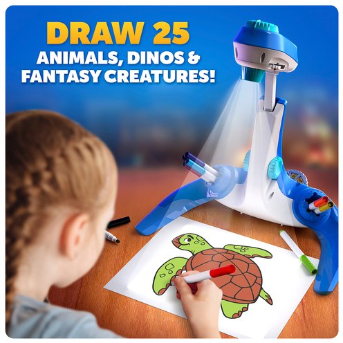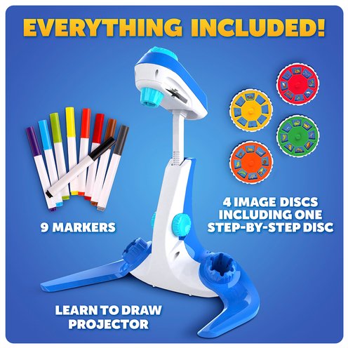 - This projector makes it fun and easy to learn to draw! Set-up is simple so you can get started right away! It also has compartments for your markers and image discs, along with foldable legs for easy storage.