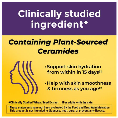 - Skin supplement: contains one 50 count bottle of Nature Made Skin Hydration + Ceramides Gummies for a 25-day supply