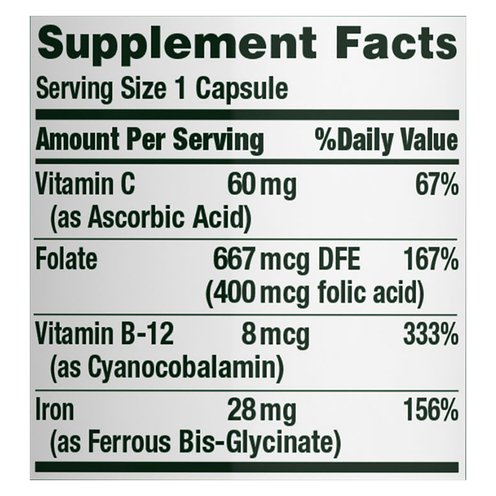 Nature's Bounty Gentle Iron 28mg Iron Glycinate Capsules