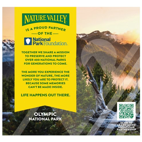 Dipped in cashew & almond butter coating chewy granola bars. No artificial flavors. Per Bar: 160 calories; 2.5 g sat fat (11% DV); 140 mg sodium (6% DV); 9 g total sugars. Contains bioengineered food ingredients. Loaded with cashews. Nature Valley is a proud partner of the National Park Foundation. Together we share a mission to preserve and protect over 400 national parks for generations to come. The more you experience the wonder of nature, the more likely you are to protect it. Because some memories can't be made inside. Life happens out there. No artificial colors. No high fructose corn syrup. Certified 100% recycled paperboard. Carbohydrate Choices: 1 1/2.