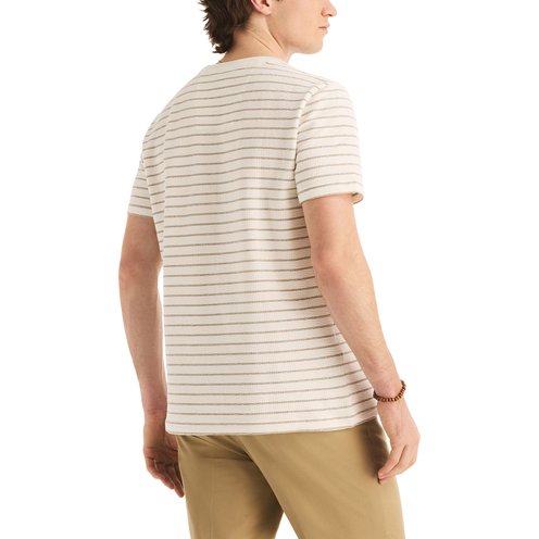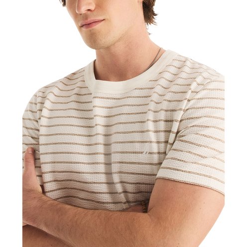 Made of cool, crisp seersucker knit, this crewneck t-shirt has a striped design and Nautica's brand icon at the chest.