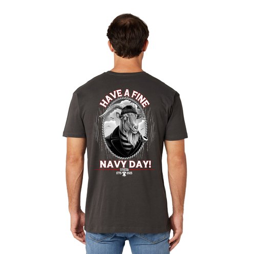 Have a Fine Navy Day! - 250 Years of U.S. Navy Grit. Bold, cheeky, and proudly Navy—this commemorative tee celebrates 250 years of unwavering service with a nod to classic military humor. Featuring a tough-as-nails goat mascot on the back and a crisp anniversary chest print on the front, it’s the perfect blend of tradition and attitude. Offered in a variety of vintage-inspired colors, this shirt salutes the sailors past and present who’ve always had a fine Navy day—rain or shine. Classic spirit. Legendary service.