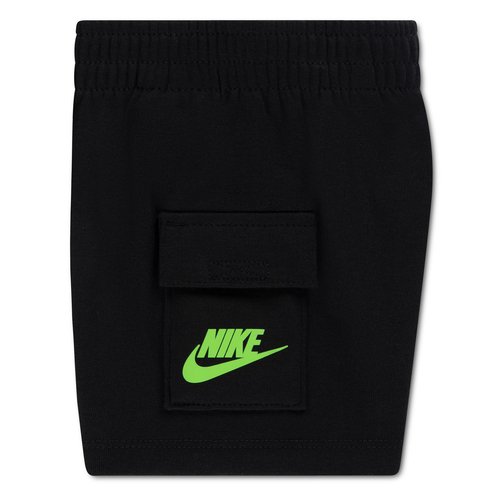 Big Nike graphics and sporty style make this set a standout for everyday play. The soft jersey tee feels light and comfortable, while the French terry shorts add cozy flexibility for crawling, exploring, and active little adventures. A cargo pocket detail gives the shorts a cool, utility-inspired look.