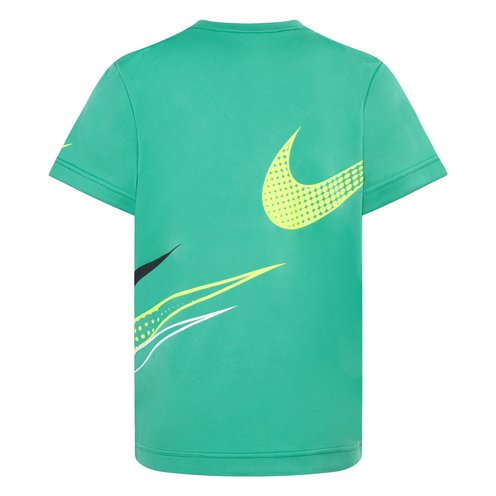 He'll look sporty and cute in the Nike Swoosh Wrap Dri-FIT Tee. It's crafted from soft interlock fabric with Dri-FIT sweat-wicking technology, so he can run and play in maximum comfort.