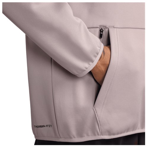 Cool temperatures at your next workout session are no match for this fitness hoodie. Nike Therma-FIT technology helps manage your body?s natural heat to help keep you warm in cold-weather conditions. Its classic fit is easy to layer, and a hidden zippered pocket secures your essentials while you train indoors or outdoors.