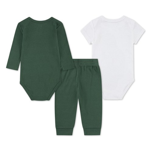 Made with soft ribbed knit fabric, this set includes a long-sleeve bodysuit, short-sleeve bodysuit, and matching pants for all-day comfort. The elastic waist offers a flexible fit for active little movers. Perfect for mixing, matching, and layering.