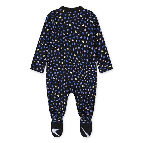 Keep your little one snug in the Nike coverall! Crafted from soft interlock fabric, it features long sleeves, ribbed cuffs, foldover mittens, and a footed design. The full-length zipper closure offers easy changes, while the Nike logo on the chest and allover print add a stylish touch. Perfect for ultimate comfort