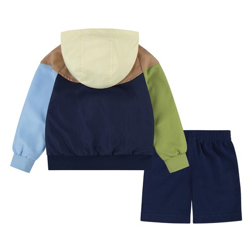 With this iconic set from Nike, kids can have fun and stay comfortable no matter the weather. This set includes a ripstop jacket with a water-resistant finish that offers a dry feel during the rain and matching French terry shorts with an elastic waistband.