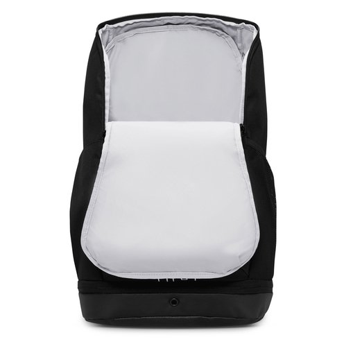 The Varsity Elite backpack holds everything you need to hoop. A large main compartment fits up to a full-size basketball. Exterior front pocket allows quick access to small items and a bottom pocket keeps sweaty clothes and dirty shoes separate.