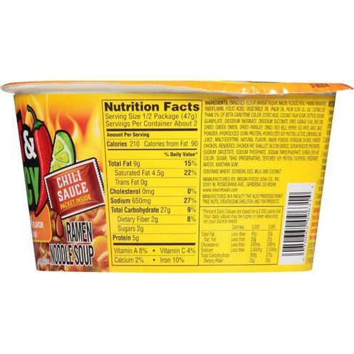 - Enriched Flour (Wheat Flour, Niacin, Reduced Iron, Thiamine Mononitrate, Riboflavin, Folic Acid), Vegetable Oil (Palm Oil, Palm Olein), Salt, Contains Less than 2% of Beta Carotene Color, Citric Acid, Coconut Palm Sugar, Dextrose, Disodium Guanylate, Disodium Inosinate, Disodium Succinate, Dried Cabbage Flake, Dried Corn, Dried Green Onion, Dried Parsley, Dried Red Bell Pepper, Egg White, Garlic, Garlic Powder, Hydrolyzed Corn Protein, Hydrolyzed Soy Protein, Lactose, Lemongrass, Lime Juice, Maltodextrin, Natural Flavor, Onion Powder, Potassium Chloride, Powdered Chicken, Rendered Chicken Fat, Shallot, Silicon Dioxide, Sodium Benzoate (Preservative), Sodium Diacetate, Sodium Phosphate, Sodium Tripolyphosphate, Soybean, Spice, and Color, Sugar, TBHQ (Preservative), Textured Soy Protein, Tocopherol (Preservative), Water, Xanthan Gum.