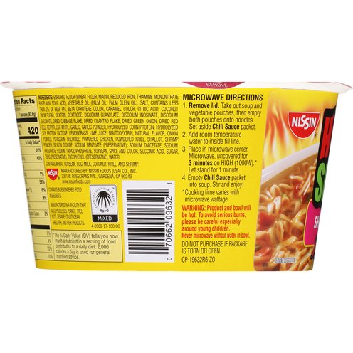 No added MSG (Contains small amounts of naturally occurring glutamates). Contains bioengineered food ingredients. Chili sauce packet inside. Ready in 3 minutes! RSPO: Certified sustainable palm oil. Mixed.