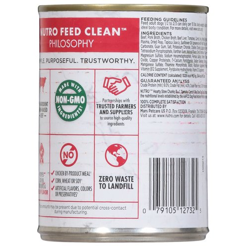 Nutro Feed Clean Philosophy: Simple. Purposeful. Trust worthy. No. 1 Ingredients farm-raised real beef. Recipes rich in nutrients & full of flavor. No chicken by-product meal (Trace amount may be present due to potential cross-contact during manufacturing).