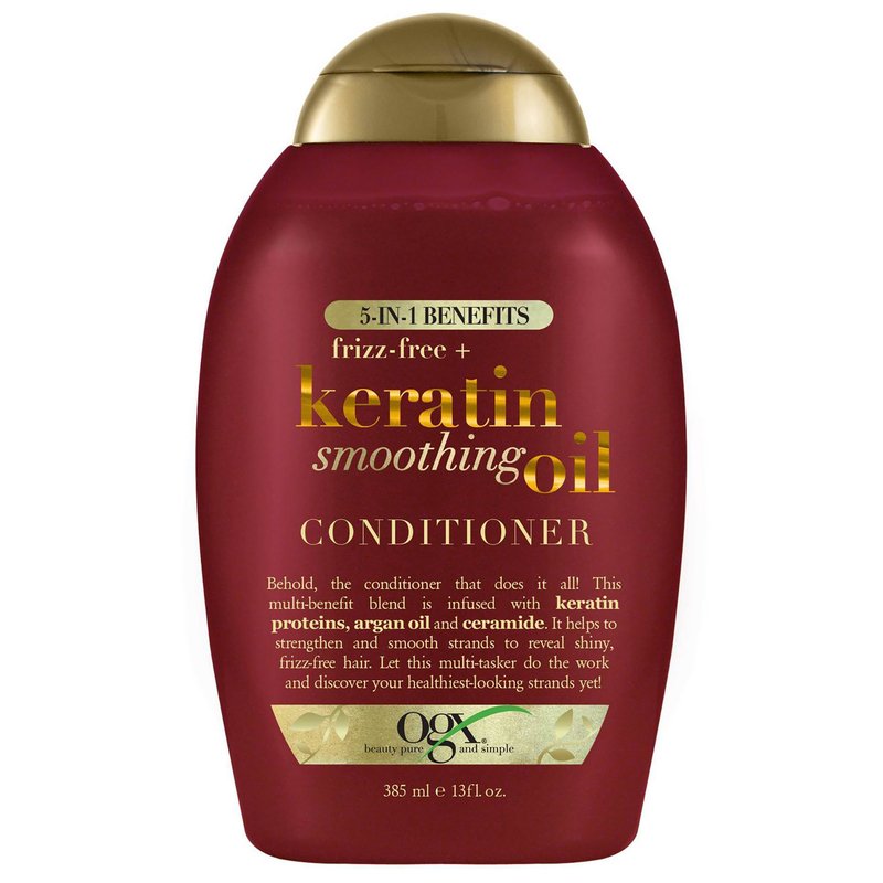 Make your showers count for more! OGX Frizz-Free + Keratin Smoothing Oil Conditioner is a true multitasker with the benefits of five products in one. It helps strengthen hair, improve flexibility, protect against humidity, keep hair frizz-free and reveal shiny hair—all in just one bottle. With hints of tropical orange, island pineapple and golden amber, it'll make your strands smell as good as they feel.