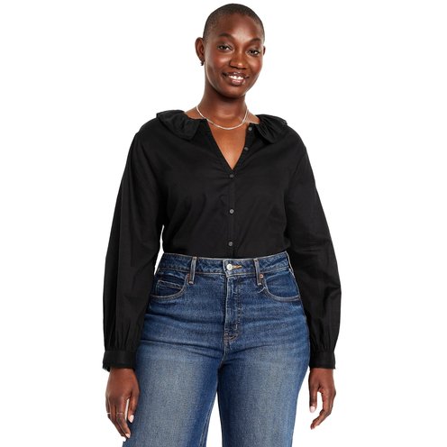 Add Effortless Elegance With This Relaxed Fit Ruffle Button-Down Shirt, Perfect For Versatile Layering!