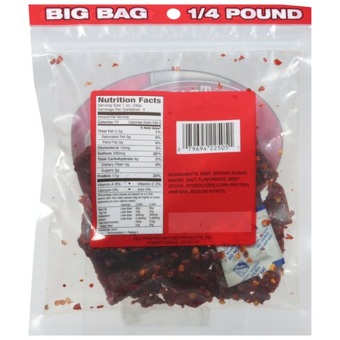 1/4 pound. Big bag. Since 1969. Naturally smoked. U.S. Inspected and passed by Department of Agriculture.