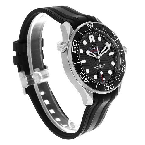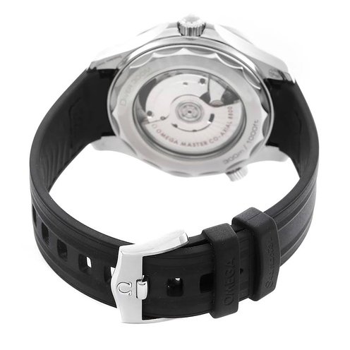 Men's Omega Seamaster. Stainless steel case. Ceramic bezel. Rubber strap. Dial with date display. Swiss Automatic movement.