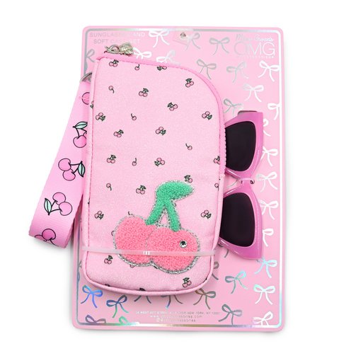 OMG Accessories Girls' Cherry Zip Around Case And Sunglass