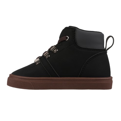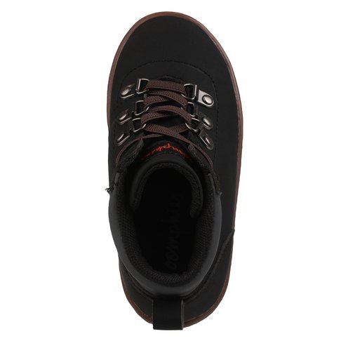 Introducing the Hudson, a hiker inspired shoe boot for boys. Built atop our classic Oomphies outsole and foam cushion footbed, the Hudson utilizes a tonal PU upper and a breathable mesh lining. Rear pull tabs makes it easy to slip on and off. Pop color hiking-inspired elastic laces and d-ring eyelets bring the shoe boot to life.