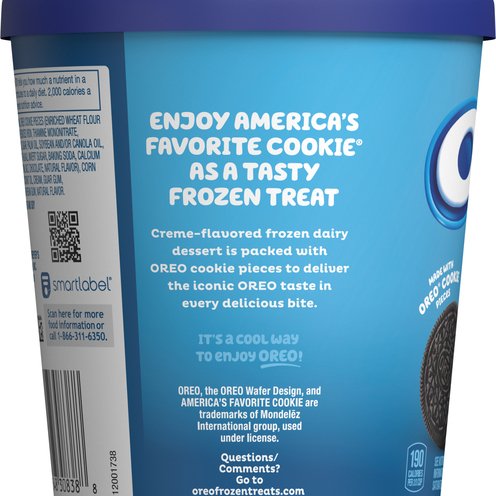 Enjoy this creme-flavored frozen dairy dessert that is packed with OREO cookie pieces to deliver the iconic OREO taste in every delicious bite.