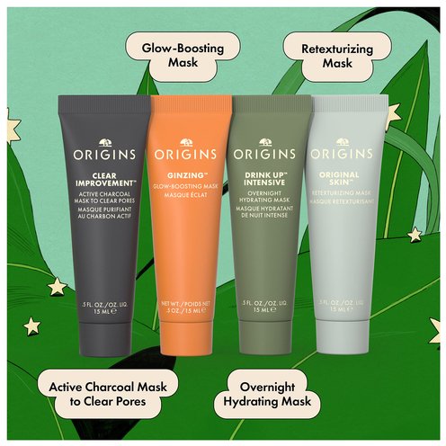 Take your spa night to go. Four favorite Origins mask treatments, in one curated kit—featuring smaller sizes to take wherever you go.