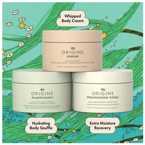 Origins Ginger Souffle is a whipped body cream infused with aromatic Ginger. This luxurious, lush body cream invigorates skin and senses, hydrates, nourishes and softens—for skin that feels velvety-smooth.