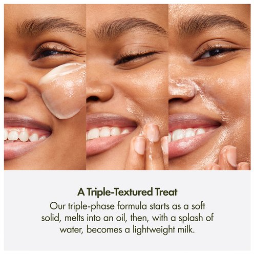 The rich, bouncy, buttery texture of this cleansing balm melts into your skin, transforming from a solid to a liquid and then a lightweight milk before being rinsed away.