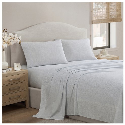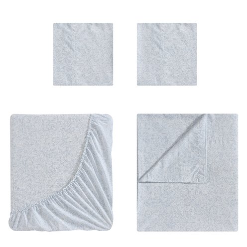 Add dreamy pattern to your bed with this cool, cotton percale sheet set from Palm Aire, featuring blue swirls on a white background. Each 4-piece bed sheet set includes a flat sheet, fitted sheet, and pillowcases to complete the look.