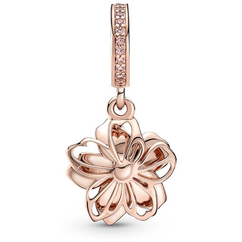 Celebrate the first signs of spring with our 14k rose gold-plated Cherry Blossom Dangle Charm. Featuring hand-applied sea pink and white enamel and accented by sparkling pink cubic zirconia, the petals on our cherry blossom rotate slightly, as if they were being blown in the breeze. A pavé-covered bail is the finishing touch on this must-have floral charm. Style it with other 14k rose gold-plated jewellery for a warm spring look.