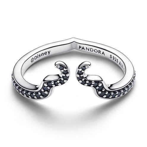 Enter your villain era with this sterling silver ring inspired by Disney's Maleficent. An open design lined with black man-made crystals, it resembles her iconic horns. A shimmering reminder to own your power.
