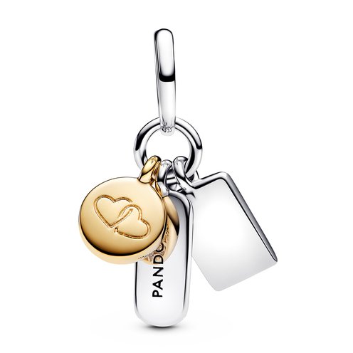 A tribute to your forever friends. This two-tone friends charm has three dangles, with engravings that read "TRUE friends are NEVER APART", "maybe in DISTANCE", "but NEVER in HEART", with pavé details and two interlinked engraved hearts. Wear it or gift it as a reminder of a connection that will always endure, no matter the distance.