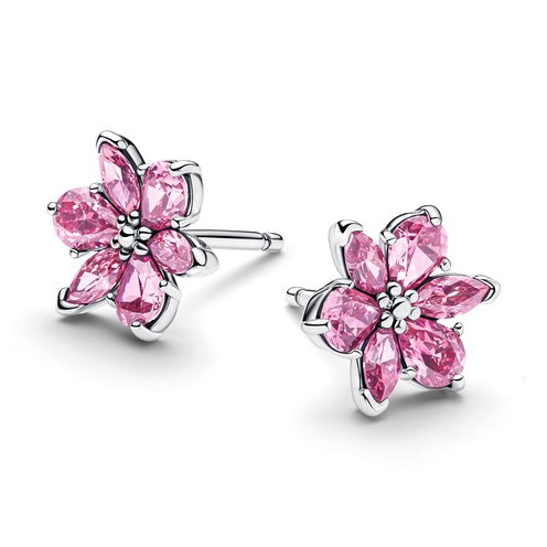 Bloom with style. Our sterling silver stud earrings feature pear- and marquise-shaped pink stones forming curved petals. An eye-catching nod to your love for nature.