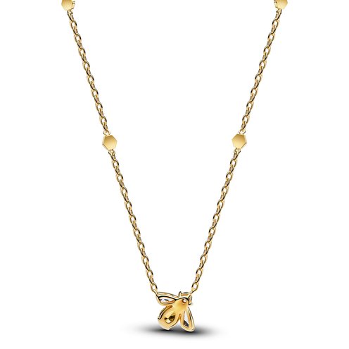 Get your style buzzing. Our 14k gold-plated necklace features a vibrant yellow and clear stone bee fixed on a chain with honeycomb details. Sweet sparkle fit for a queen bee.