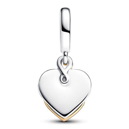 The power of motherly love shines bright in our Lab-grown Diamond Engravable mom Double Dangle Charm. Featuring a 14k gold-plated heart motif on a heart-shaped disc intertwined with a knot-inspired openwork heart, it embodies the infinite love for mom. A 0.009 ct lab-grown diamond shines at the center, symbolizing her preciousness. The other disc crafted in sterling silver carries a heartfelt engraving that reads "mom you are so precious to me", while its back is engravable for a personalized touch. Please note, that each lab-grown diamond is treated with a post-growth color enhancement called annealing.